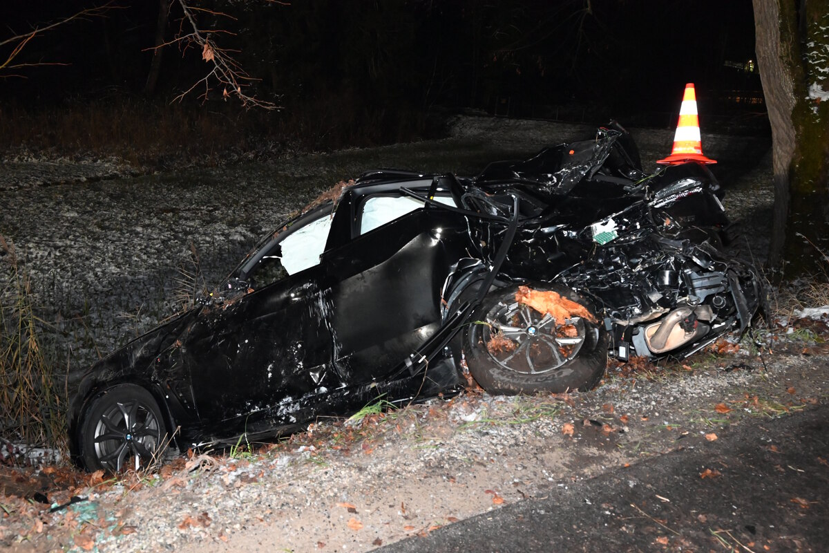 Dort geriet er mit seinem Auto über den linksseitigen Fahrbahnrand und kollidierte mit dem Heck des Autos gegen einen Baum. Dadurch drehte sich das Auto im Uhrzeigersinn und kollidierte mit der linken Fahrzeugfront gegen einen weiteren Baum.