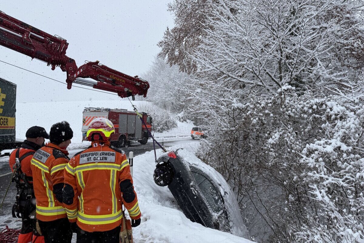 Um 6.45 Uhr kam ein Autofahrer auf der Heinrichsbadstrasse aufgrund der schneebedeckten Fahrbahn von der Strasse ab und rutschte rund 15 Meter in ein Waldstück. Er konnte das Auto selbständig verlassen und blieb unverletzt.