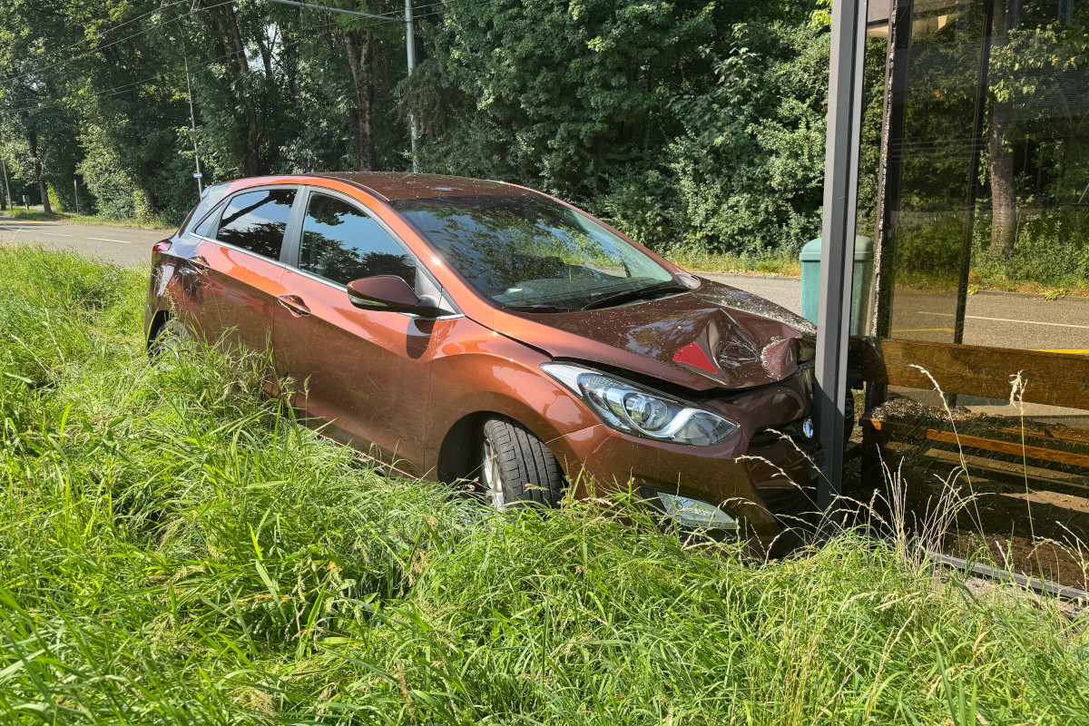 Daraufhin lenkte er stark nach rechts, überfuhr das Trottoir, durchquerte eine Wiese und abschliessend mit einer Bushaltestelle.